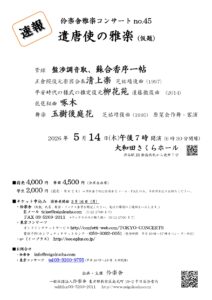 伶楽舎雅楽コンサートno.45 遣唐使の雅楽(仮題)2026年5月14日(木) 19:00渋谷区文化総合センター大和田 さくらホール