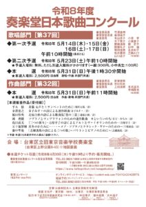 令和8年度奏楽堂日本歌曲コンクール2026年5月14日(木) - 2026年5月31日(日)台東区立旧東京音楽学校奏楽堂