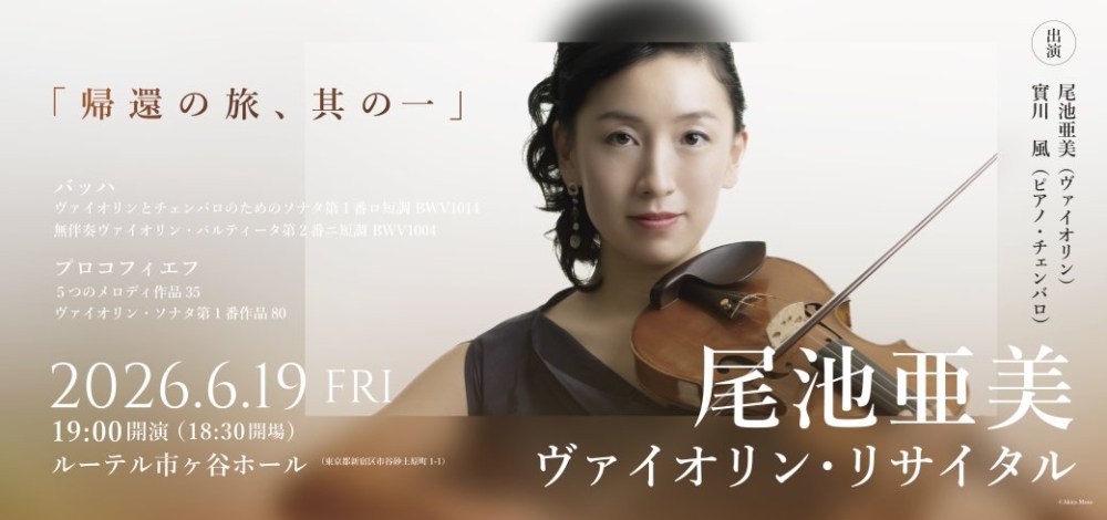 尾池亜美 ヴァイオリン・リサイタル「帰還の旅、其の一」2026年6月19日(金) 19:00ルーテル市ヶ谷ホール